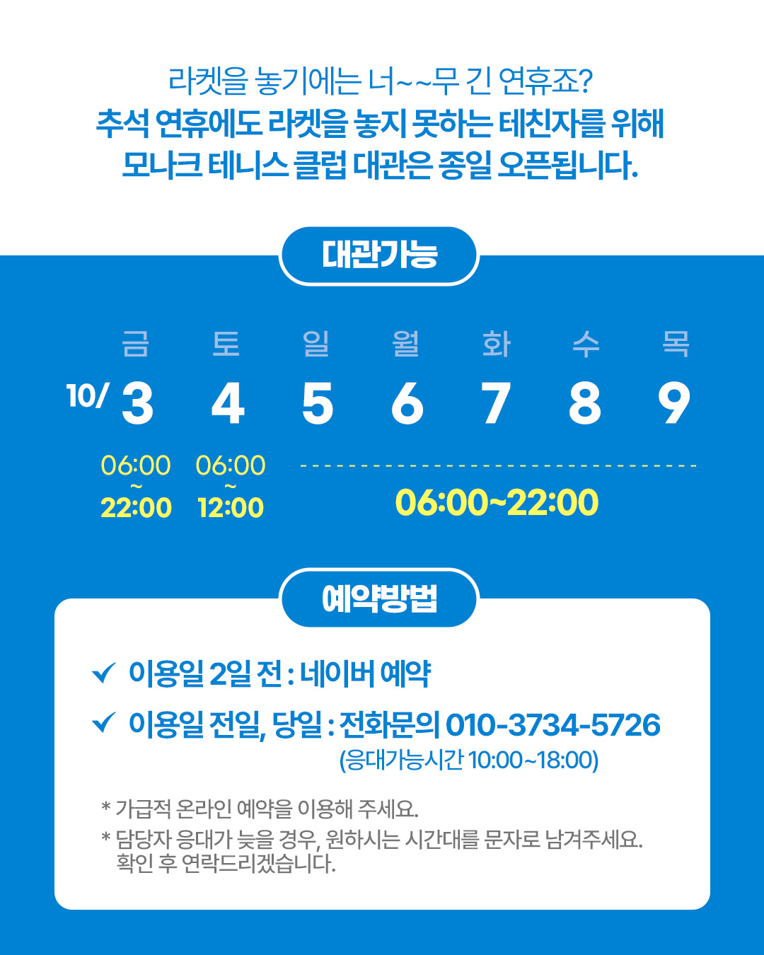 추석 연휴에도 종일 오픈합니다!